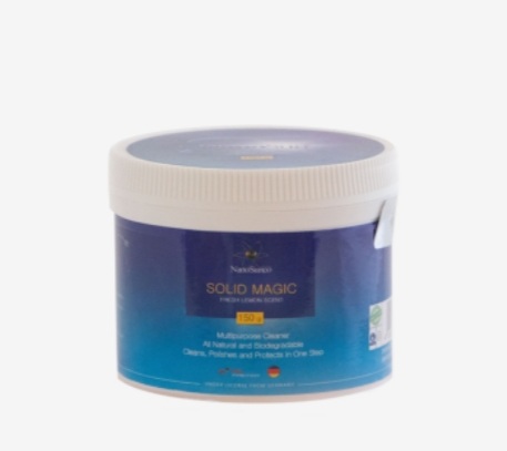 سالید مجیک نانوسان یکی از پرفروش ترین محصولات این برند میباشد که دارای بافت صابونی و پد اسفنج نانو تعبیه شده در بسته بندی محصول می باشد. این محصول بی نظیر دارای ویژگی های بی شماری بوده و به عنوان یک تمیز کننده همه کاره سطوح مطرح است. سالید مجیک برای پاک کردن سینک ، شیرآلات ، سرامیک ، بدنه اتومبیل خودرو و همچنین لایه بردار ملایم از سطوح و رفع کننده آلودگی مطرح می باشد.با استفاده از سالید مجیک می توانید سینک ، سرامیک ، دیوار ها و بسیاری از سطوح را به بهترین و راحت ترین حالت ممکن تمیز کنید.