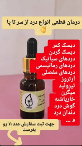 حجم : 15 میل اندازه محصول : 5*3*9 سانتی متر اصالت کالا : اصل بهبود : درد حاصل از شکستگی استخوان/انواع سر درد ها/انواع دردهای مفصلی(سیاتیک کمردرد، دردهای گردنی مشکلات شانه، آرنج، زانو): .